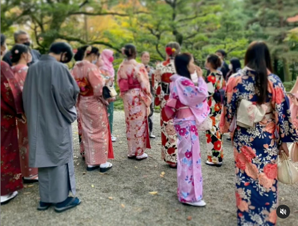 Walk around Kenrokuen garden in a kimono with a Russian tour guide